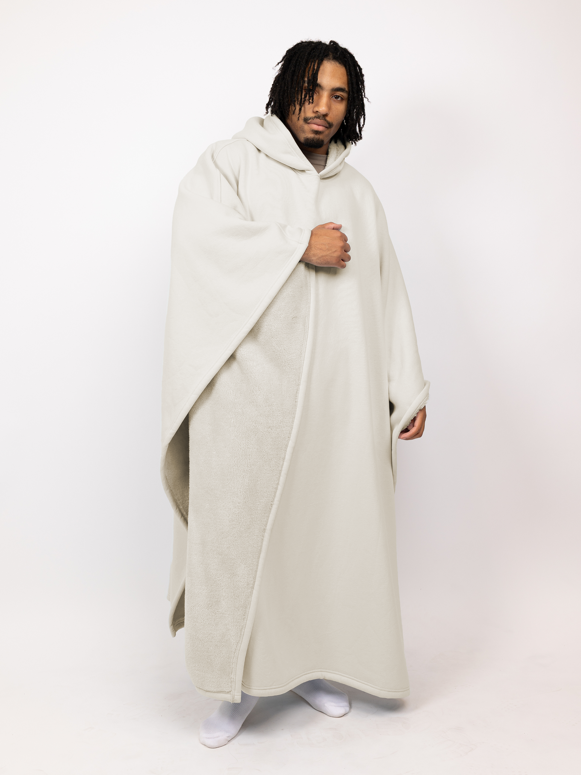 Hemma på soffan, på tåget eller på resa – CozyCocoon™ är din personliga komfortzon. Tack vare one size fits all-designen behöver du aldrig fundera över storlekar och den passar alla utan problem. Det andningsbara tyget håller dig varm utan att du blir överhettad, så du kan bära den när som helst. Det mjuka tyget känns behagligt mot huden och ger dig en känsla av trygghet och säkerhet, var du än befinner dig.